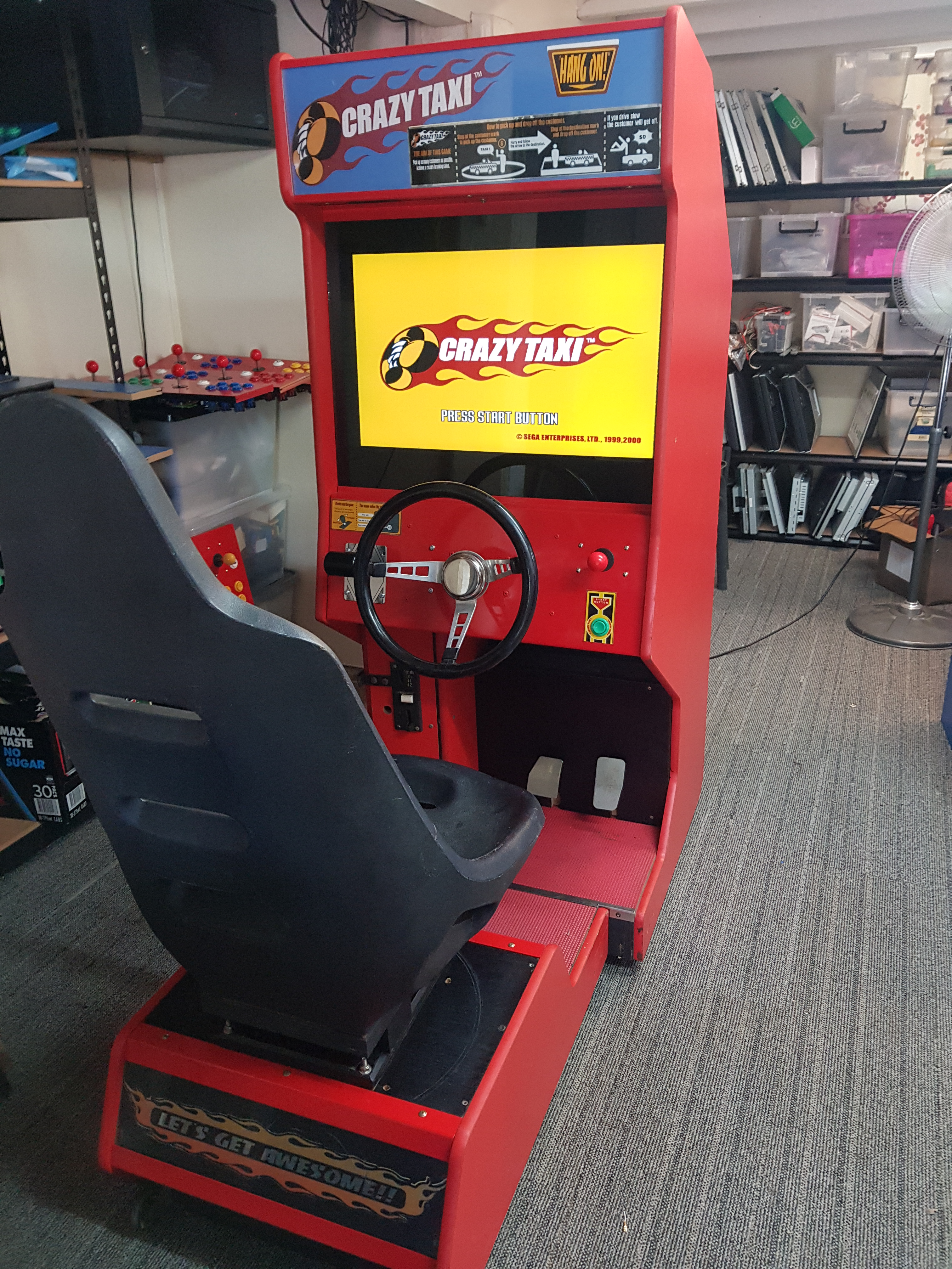 Arrived as an empty cabinet. Crazy taxi is running off a Dreamcast and an lCD monitor was added.
